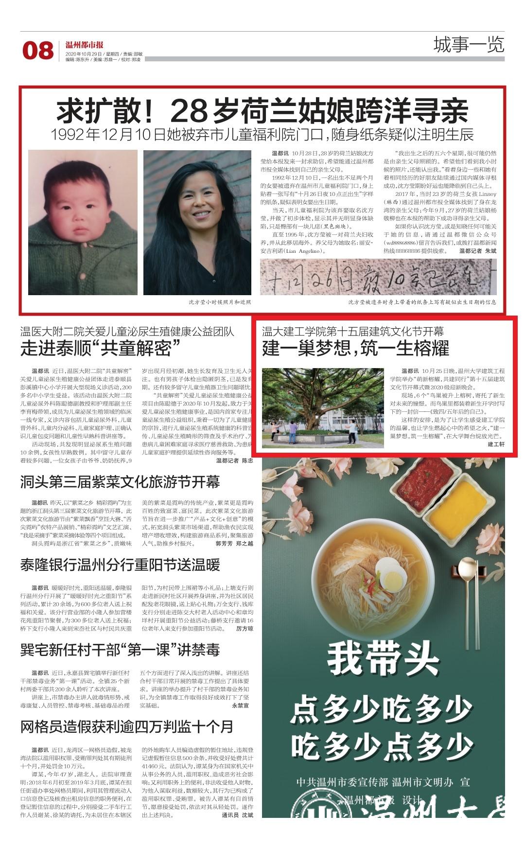 温都讯 10月25日晚,少妇白洁 建筑工程 学院举办“萌新榕耀,共建同行”第十五届建筑 文化节开幕式暨2020级迎新晚会。 现场,6 个“鸟巢被升上榕树,寄托了新生 对未来的憧憬。而鸟巢里都装着新生开学时写 下的一封信——《致四/五年后的自己》。 这样的安排,是为了让学生感受建工学院 的温馨,也让学生燃起心中的希望之火,“建一 巢梦想,筑一生榕耀”,在大学舞台绽放光芒。