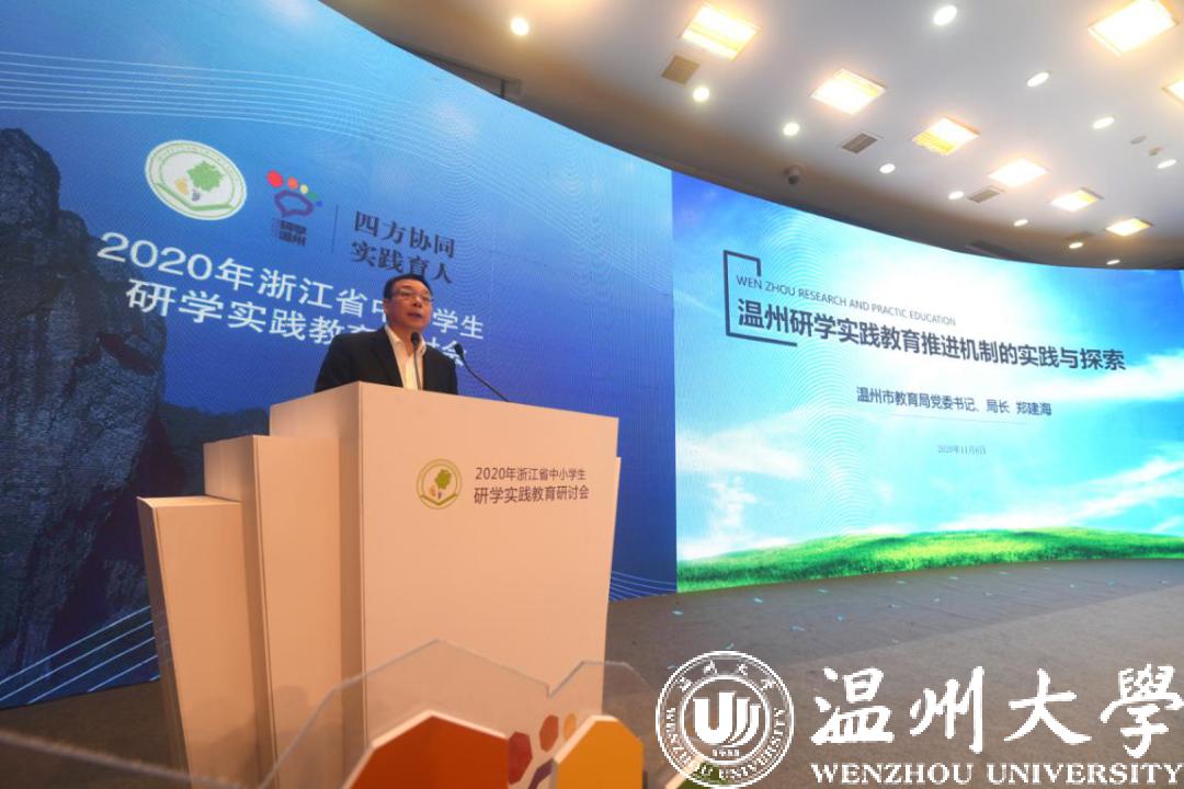 温州市教育局党委书记、局长郑建海作《温州研学实践教育推进机制的实践与探索》主旨发言,介绍了研学教育区域推进“四方协同,实践育人”的温州探索,温州全面布局“研学一盘棋”,精准落子“研学关键棋”,全力下好“研学先手棋”,坚持政府统筹,系统构建研学实践推进机制;坚持学校主导,全面深化研学实践课程改革;坚持社会协同,聚力推动研学实践规范发展;坚持家校联动,合力推进研学育人落实落细。
