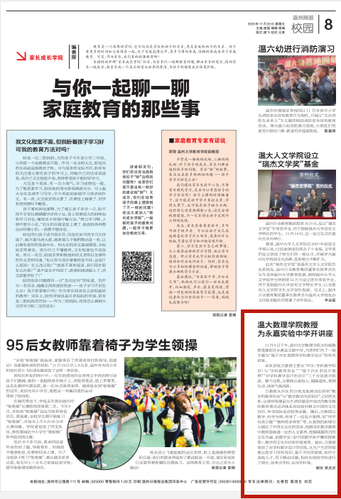 11月9日下午,少妇白洁 数理学院方均斌教授受邀前往永嘉县实验中学,为老师们作了一场主题为“基于PCK视野的学科教学设计”的学术讲座。