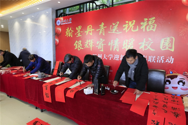 在本次活动中,温大老干部书画院的老干部们与鹿城书协、鹿城书协老书委的书法家一同献上了高超书艺,共赠写700余对(幅)春联、绘画和“福”字,获得了师生们交口称赞。一副副苍劲有力的对联,一张张惟妙惟肖的画作,一句句吉祥如意的祝福,既承载着广大师生对新年新气象的期盼,同时也为弘扬和传承中华传统文化发挥了积极作用。
