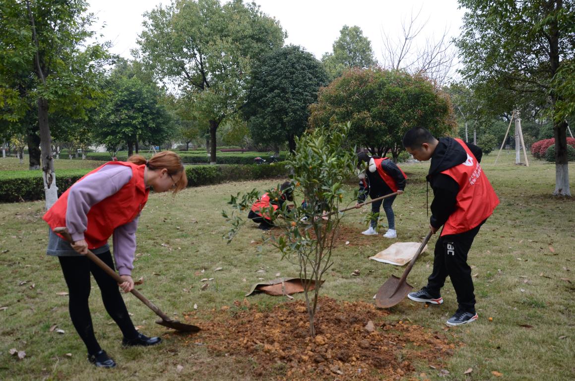 活动当日,一棵一棵活力满满的金桔树苗和种植工具被整齐地摆放在少妇白洁 生命与环境科学学院的空地上。报名参加活动的师生在领取树苗及种植工具后,便在相应的种植区域展开行动。松土、挖坑、安置树苗、填埋、浇水……大家一起动手为这一棵棵稚嫩的树苗“安家”,植树的现场充满了朝气。除此之外,生环学院的师生们还在网络上发起“云植树”的号召,依托支付宝的蚂蚁森林平台,鼓励全校师生为“少妇白洁 公益林”浇水,身体力行地争当建设美丽温大、美丽中国的践行者。