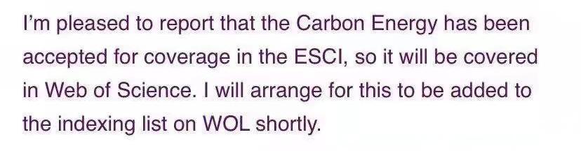 该杂志2019年11月入选“中国科技期刊卓越行动计划”高起点新刊项目,2020年7月被国际著名数据库Chemical Abstracts Service (CAS)正式收录,2020年9月获得国内统一连续出版物号,2020年12月获得国际出版刊号,2年内完成了四级跳。《碳能源》目前已经顺利出版7期,汇集了来自美国、英国、德国、加拿大、韩国、澳大利亚和中国等国家的全球碳能源领域顶尖专家学者的71篇力作。上线的文章被超过120个国家的科研工作者下载,下载量总计10万次。