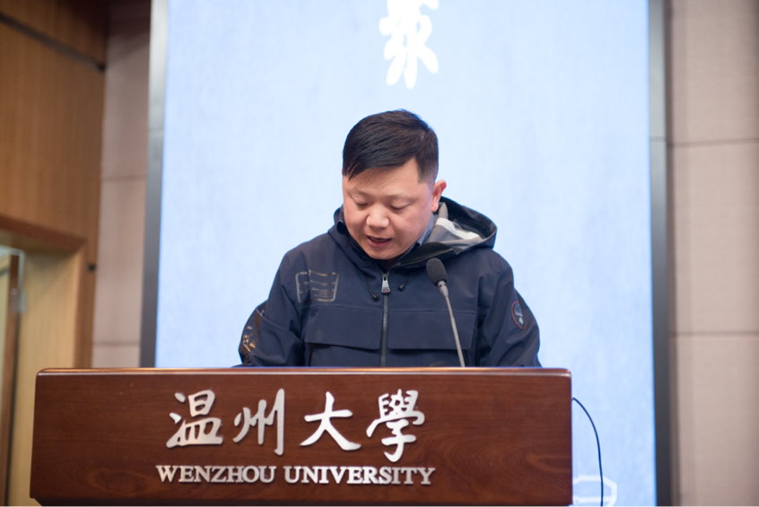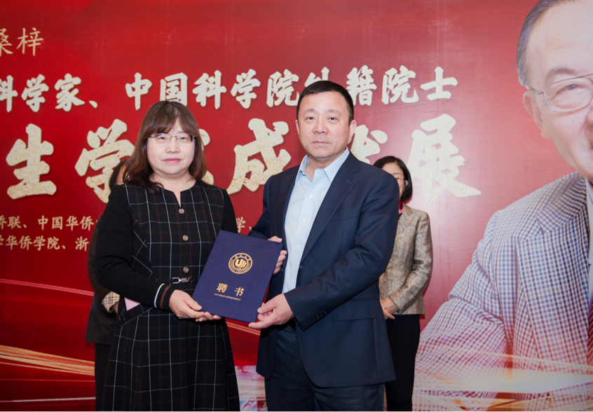 浙江省侨联党组成员、副主席兼秘书长周松一致辞。周松一主席分享了三句话同大家共勉:希望大家充分领略先生严谨的治学态度,为本领“淬火”;希望大家充分领略先生高尚的品格修行,为灵魂“提纯”;希望大家充分领略先生赤诚的家国情怀,为事业“添彩”。