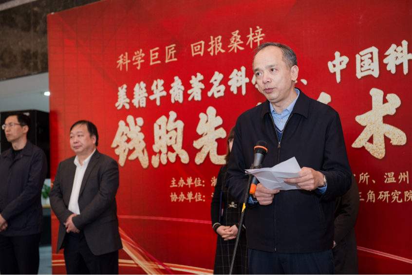 研讨会第一阶段为钱煦院士学术成就展开幕式,浙江省侨联兼职副主席、温州市侨联党组书记、主席郑宏国主持开幕式。中国华侨华人研究所副所长张秀明宣读钱煦院士贺电。