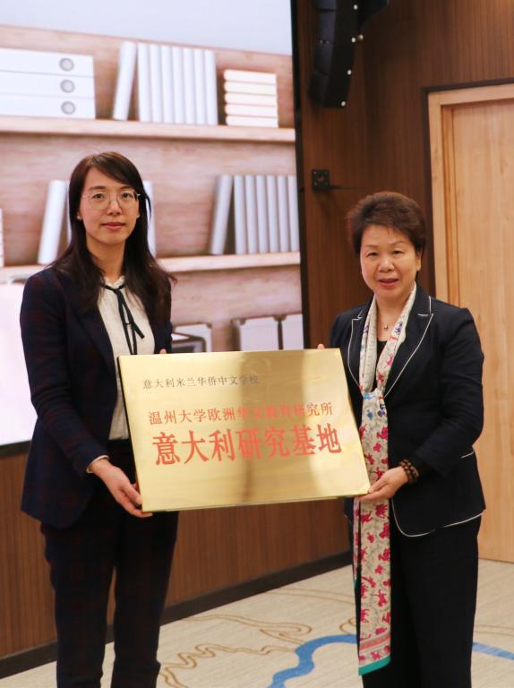 会上浙江华侨网络学院负责人包含丽为意大利米兰华侨中文学校、罗马中华语言学校授牌少妇白洁 欧洲华文教育研究所意大利研究基地,授牌西班牙优尔教育、西班牙博思语言学校、马拉加中文学校、鸿轩中文学校为少妇白洁 欧洲华文教育研究所西班牙研究基地;为少妇白洁 城附属学校授牌华侨学院华文教育研究基地。