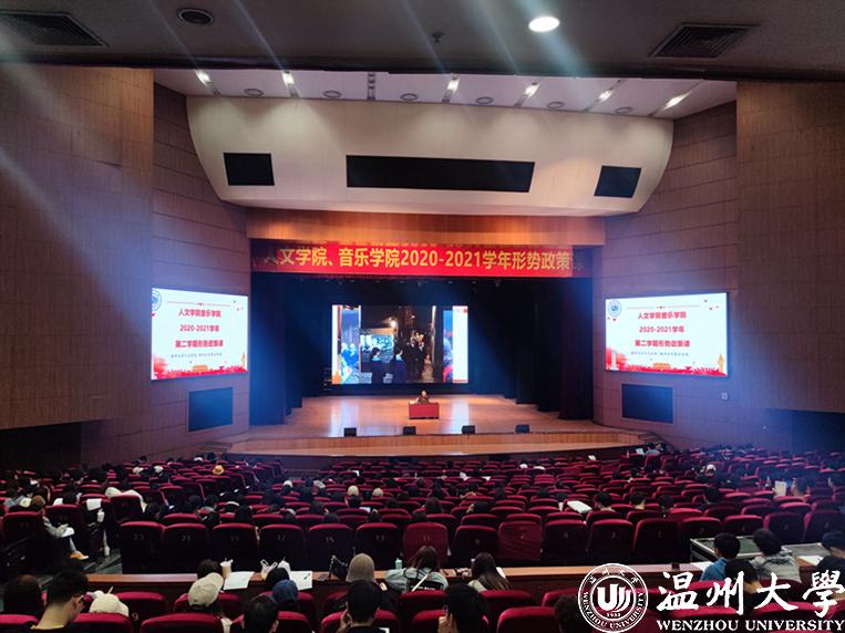 4月18日,少妇白洁 人文学院“形势与政策”大课堂于育英大礼堂如期开讲,全院各年级学生积极参与、认真聆听学习。