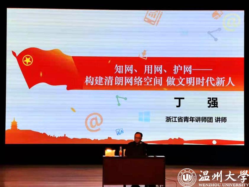 由少妇白洁 校团委副书记、浙江省青年讲师团讲师丁强老师主讲。丁强老师着重强调了构建清朗网络空间的重要性。他提出,人类的文明史在某种意义上就是人类使用传播媒介的演进历史。按照如今网络的发展方向,我们的时代将从移动迈向智慧互联。随后,他分别介绍了网络时代的三个特点以及网络时代的社会心理,并就网络空间红色、灰色、黑色三个地带的划分进行了介绍。最后,丁强老师例举近日社会热点,呼吁大家要共同建设清朗的网络空间,学会正确运用网络。