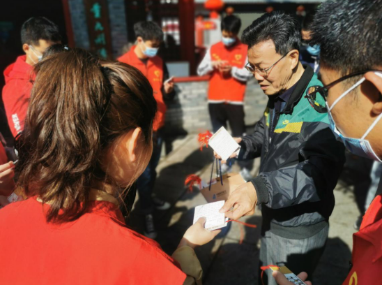 红日亭前,感谢陌生爷爷送出的自制国歌卡片及雷锋书签。书签虽薄,但所带给我们志愿者的是那被认同,被感谢的浓浓暖意;卡片虽小,但其上记载着的,是那象征着无数中华人民信仰的祖国之歌。“唱红歌,爱家乡,爱祖国”这不正是一个人对待祖国,对待建国之党:中国共产党的最好献礼吗?。正如是,作为青年大学生,积极入党,投身志愿,又何尝不是一种对2021年百年建党的最好献礼呢!