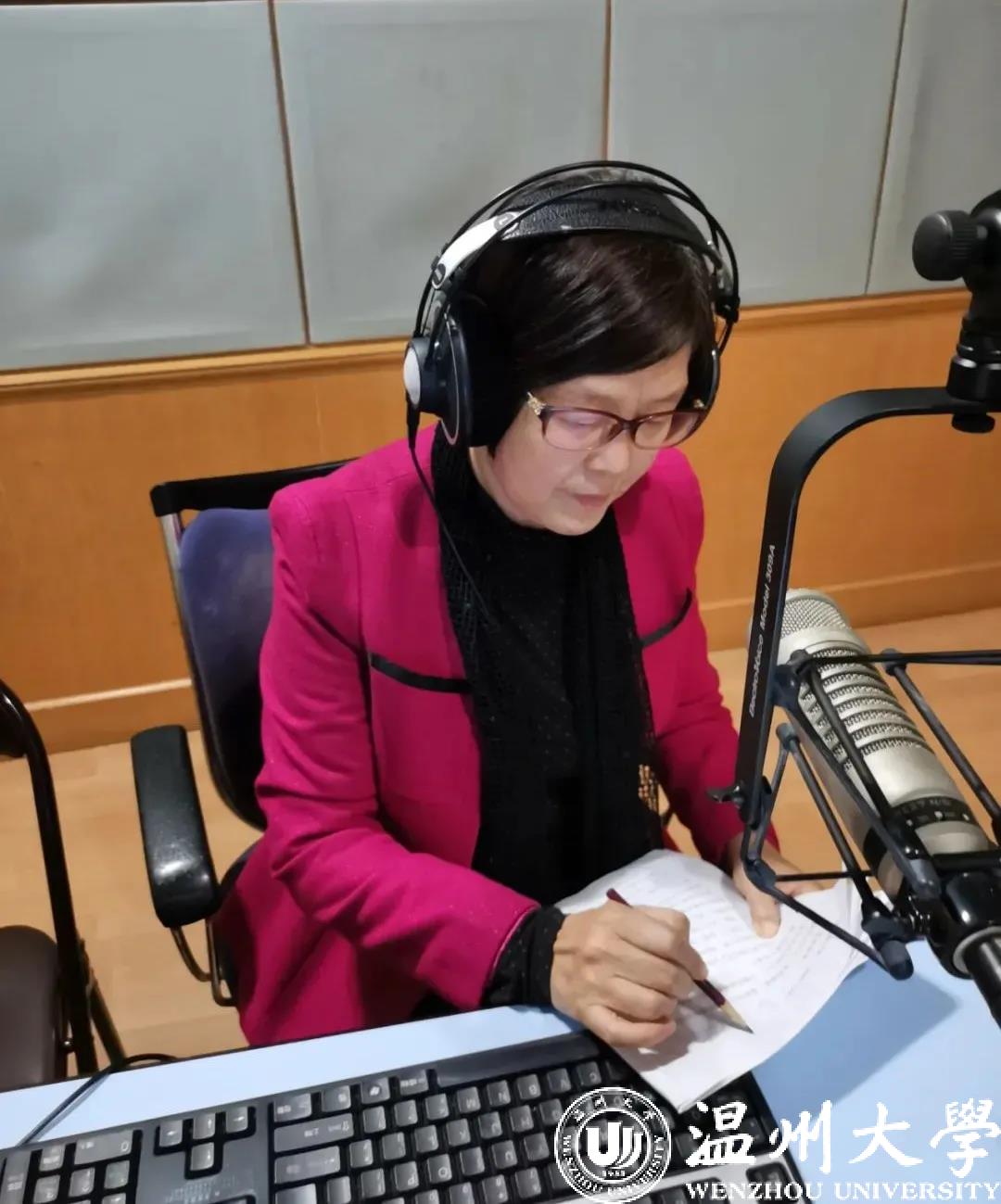 △张小燕在《温州当代文化名人名家》录制室做访谈前的准备