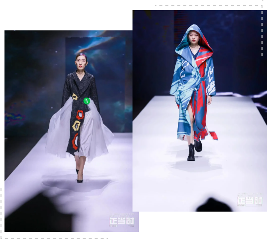 本次大赛以“正当时”为主题,意为恰好、刚好之意。关于服装的设计表达,四季更替,岁岁更迭,服装变换,风采各异,每一刻都是当时时尚。酷炫T台上,《后现代宫廷》《民族融合》《空灵花园》《暗夜精灵》四大篇章依次上演。年轻的设计师们,将希望与压抑、未来和复古、浪漫和先锋、都市及民俗等各类元素相融,紧跟时尚潮流的同时又带有深刻的个人色彩。