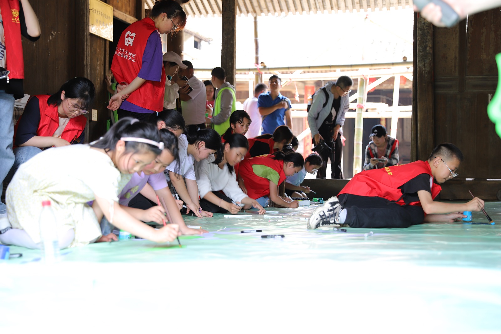 “姐姐,你看,这是我画的绿草地和大树,还有蓝天”,孩子们在画布上用丙烯颜料将自己心中简单、童真的“青山绿水”描绘出来。为让村民们描摹自己心中未来的无废村庄,“生命曙光”青年志愿者服务中心的志愿者们以及生命安全健康协会的社员们引导小朋友们在四块10米长的画布上创作,以“我爱我家”为主题,画出美丽家园,让美丽乡村建设深入童心。