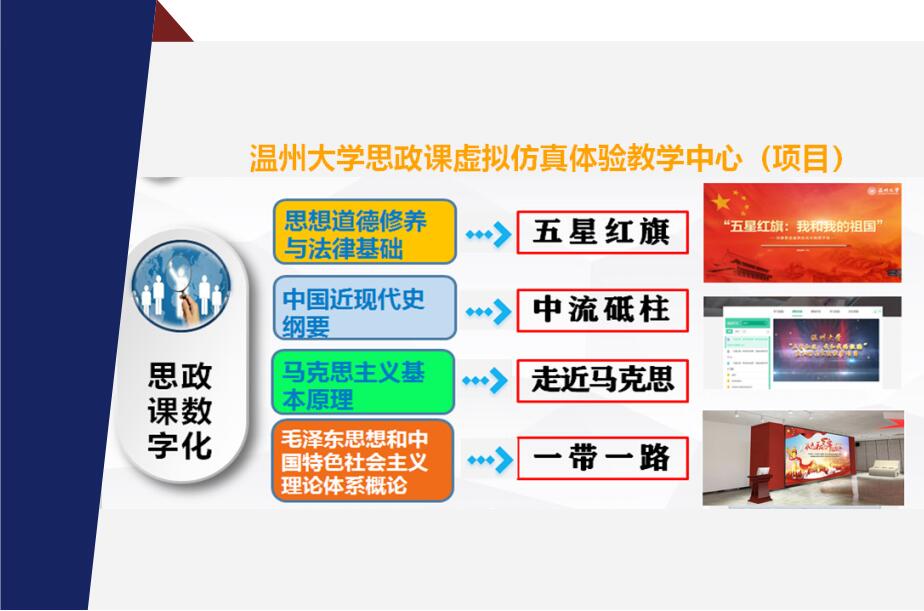 记者了解到,温大思政教育专业在改革建设中闪现出了不少亮点,具体举措可概况为红色教育常态化、课程建设体系化、实验教学专业化、技能训练全程化和内外培养一体化。卓高生举例介绍:“在培养模式上,我们不断完善思政教学顶层设计,将地方德育素材贯穿于教学全过程。比如在中共浙江一大会址、温州革命烈士纪念馆、红十三军纪念馆等地进行现场教学,定期运用国旗广场、全国首家国旗馆、大型歌剧《五星红旗》以及《我和我的祖国》省级虚拟仿真项目等思政教育资源,开展新时代爱国主义教育。”