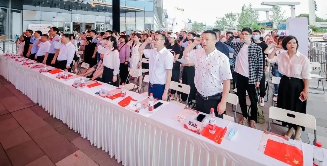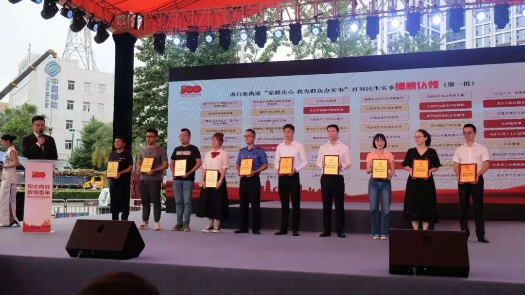 南白象街道庆祝建党100周年系列活动启动仪式,受邀领导们上台共同按键启动。