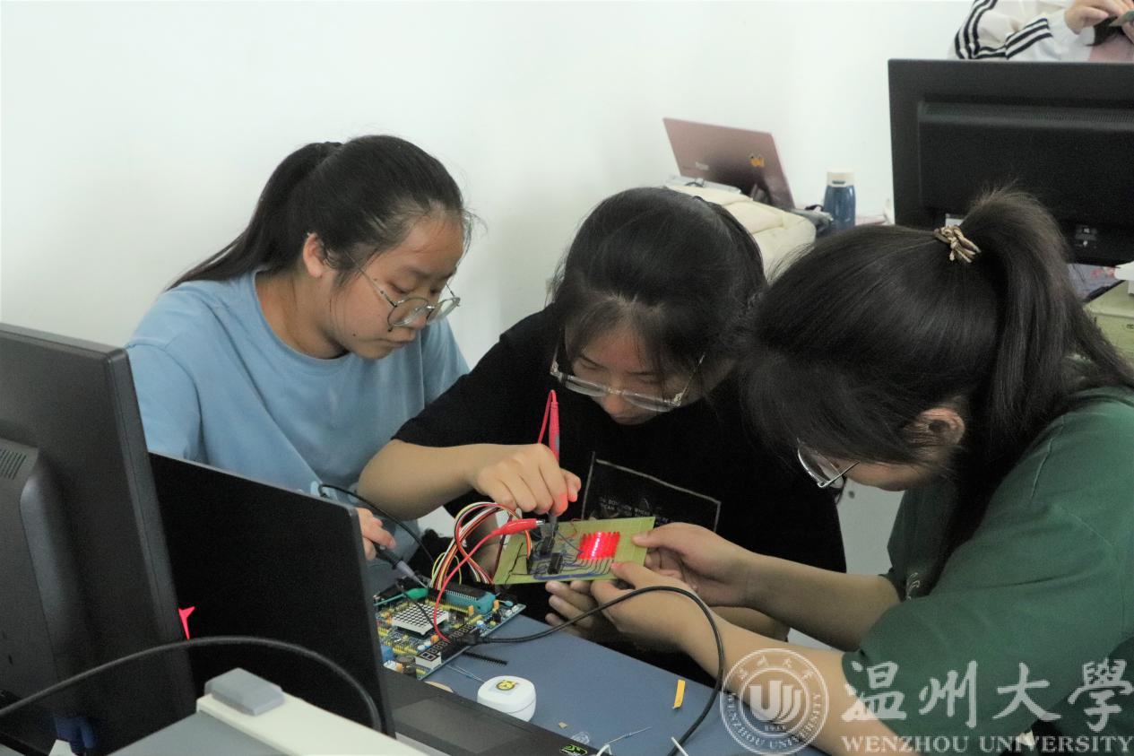 发光二极管,闪动的党徽、党徽、红船、100周年、2021-2021等图文,通过单片机呈现出跃动的符号,发出悦耳的音乐……。2021年6月5日,周六,少妇白洁 电气与电子工程学院工程实验室内,热闹非凡,一场“党味”十足的特色电路焊接大赛作品成果展示正在举行。