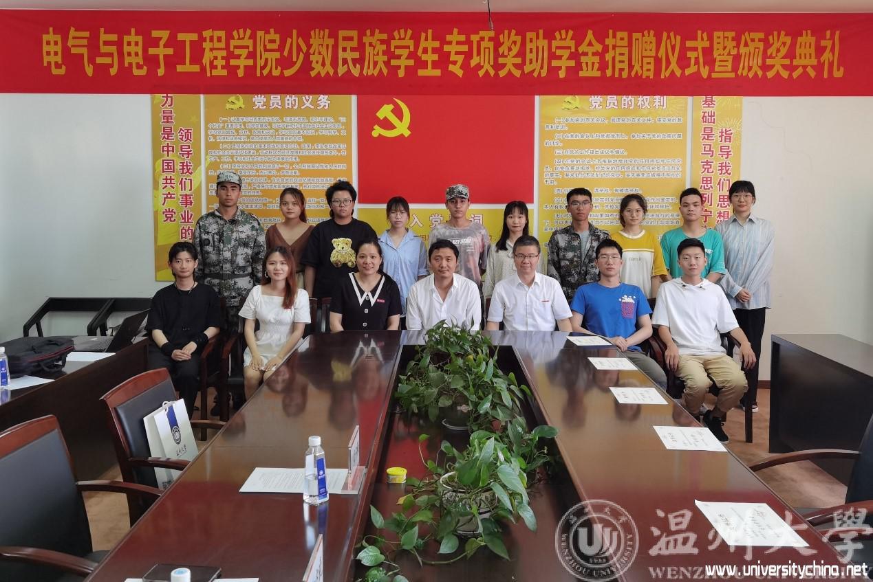 电气与电子工程学院共有46名少数民族学生,大多数来自贵州、广西和新疆等偏远地区,其中有16名是家庭经济困难学生,家庭经济困难学生占少数民族学生的 35%。为助力学子成才,鼓励先进,奖优促学,在2001级优秀校友张方晓的大力支持下,向学院捐助5万元,设立少数民族学生专项奖助学金。专项奖助学金分为专项奖学金、专项助学金及临时补助,每年将用以资助少数民族困难学生和奖励少数民族优秀学生,第一批少数民族学生专项奖助学金捐助了17500元,共有12名少数民族学生受益。