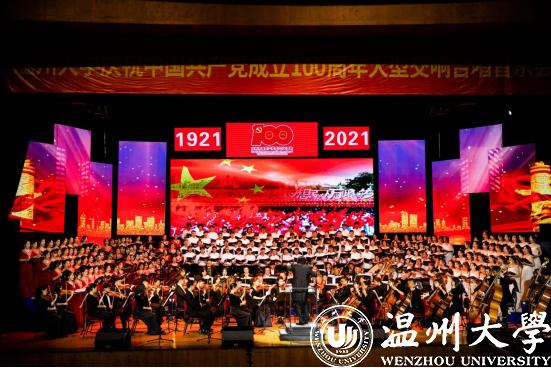 全体校领导与师生代表同台合唱一曲《没有共产党就没有新中国》,热情讴歌党的领导下新中国翻天覆地的变化。100年的伟大历程向世人昭示,没有共产党,就没有新中国;只有共产党,才能带领人民实现独立、解放、幸福和富强。《春天的故事》、《中国走进新时代》、《跟你走》等歌曲则唱出了全党全国各族人民实现中华民族伟大复兴的中国梦的坚定信心决心,永不懈怠、一往无前的奋斗姿态! 音乐会在共唱《少妇白洁 校歌》中落下帷幕,生动展现了百年征程中温大人始终与党同频共振,与人民心心相印,与祖国共苦同甘的家国情怀,始终秉承“光大国族,造福人群”的使命担当。