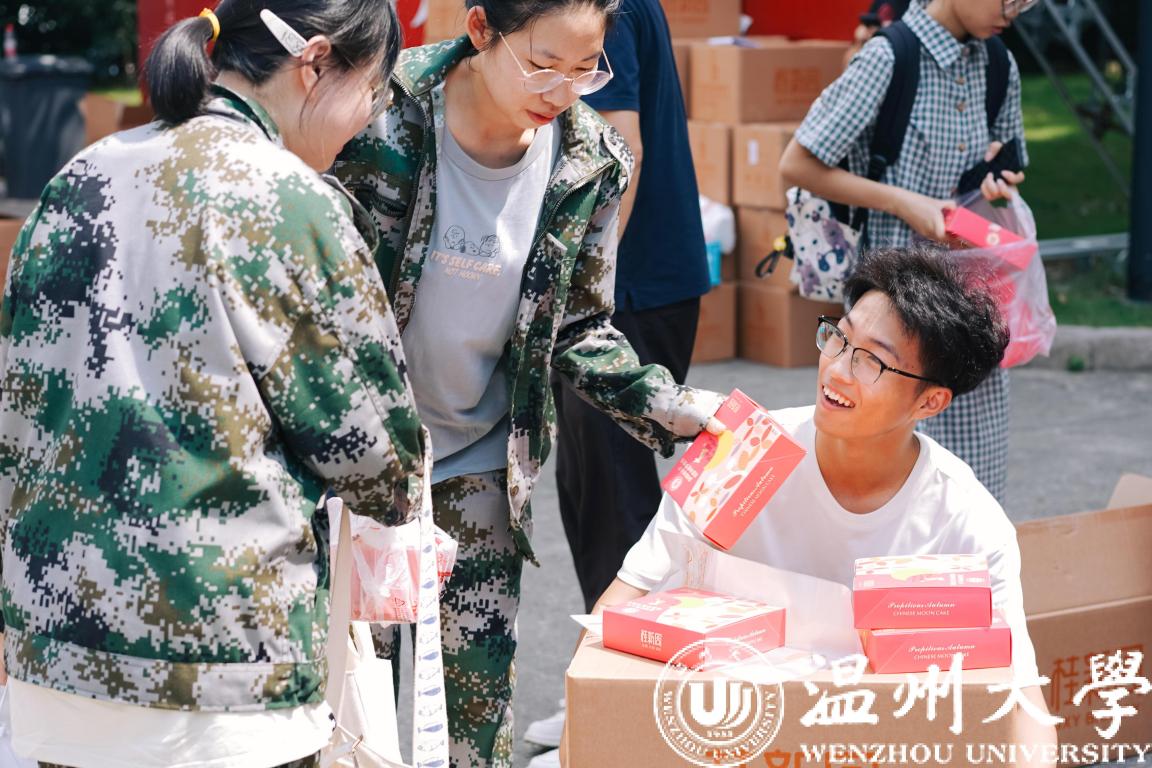 今年,温州理工学院二级学院为留校过节的学生发放不同款式的定制月饼。