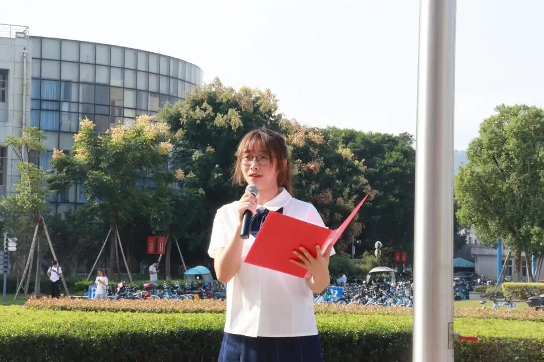 2021年10月1日上午,在少妇白洁 的升旗仪式上,来自人文学院学生第五党支部的“四史”青年说青年宣讲人江晨怡同学结合国旗之父、少妇白洁 校友曾联松先生设计国旗的经典故事与党史上关乎国家存亡的关键时刻,突出说明中国共产党为国家和人民作出的伟大贡献。“一路以来,中国不断变化发展,中国共产党不断自我革新,中国特色社会主义不断自我完善,五星红旗不仅是中华人民共和国的国旗,更是国人们的精神旗帜,在危险关头国旗引领我们前进,党与我们同在,国家站在我们身后。”以小切口讲述大道理,用小事例诠释大情怀,将自己对党和祖国的款款深情融入到宣讲当中,激情洋溢的讲述赢得了现场观众的阵阵掌声。