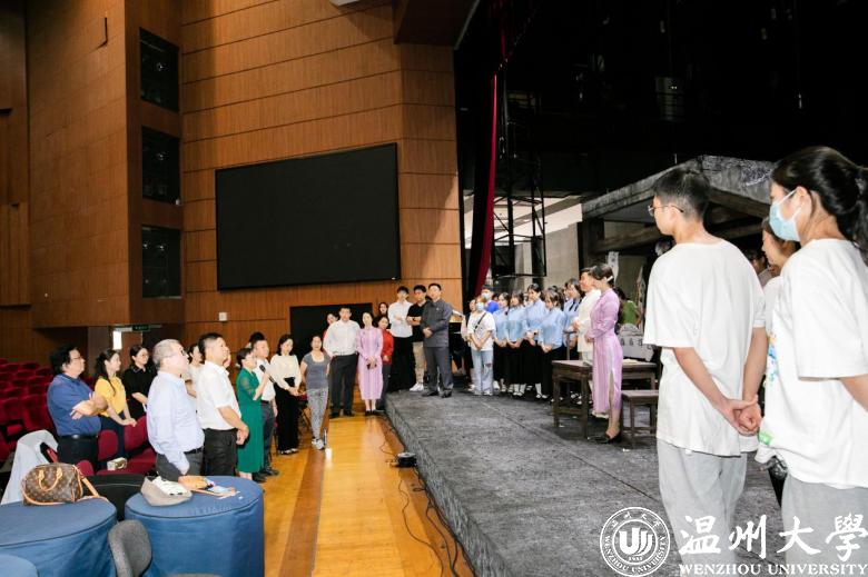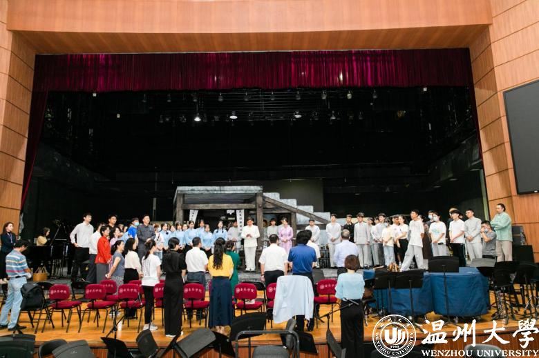 《五星红旗》是国内首部以国旗为题材的歌剧,是一部被业内认为“极有挑战性”的歌剧。随着展演日期临近,连日来,音乐学院参演师生驻扎育英大礼堂,紧锣密鼓地排练节目,导演王湖泉教授亲临排练现场,坐阵指挥,力求以最好的状态展现温大风采。主演、群演、乐队通力合作,一遍又一遍地排练,揣摩人物心理和唱词动作调度。据了解,此次参加中国歌剧节时间紧、任务重,为了剧目更完美的呈现,剧组演职人员都在进行高强度的排练,哪怕是国庆假期,大家也都坚守在自己的工作岗位上为歌剧节全力以赴。大四的蓝展仪同学已是第三次参演《五星红旗》,“虽然正处于考编的关键时期,但收到通知后,我和室友毫不犹豫的就来了。这是一次非常难得的机会,演好《五星红旗》,弘扬国旗文化,不仅是我们的光荣更是使命。”蓝展仪说道。