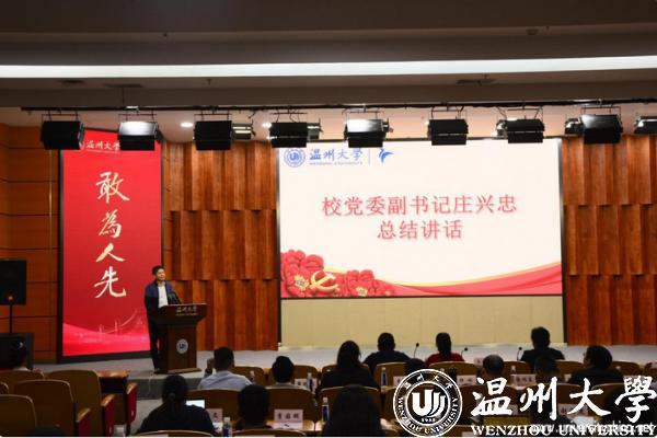 最后,校党委副书记庄兴忠作总结讲话,他强调要以“暑期社会实践”为抓手,助推思想引领“春风化雨”;以“暑期社会实践”为契机,助力科技创新“更上层楼”;以“暑期社会实践”为依托,推动实践育人方式“推陈出新”。同时向同学们提出三点希望,一是希望同学们通过社会实践勇于坚定理想信念;二是希望同学们通过社会实践善于感悟家国情怀;三是希望同学们通过社会实践勤于磨砺意志才干。