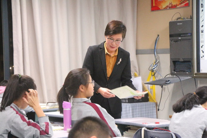 (郑彩莲老师正在为中学生做生涯规划)
