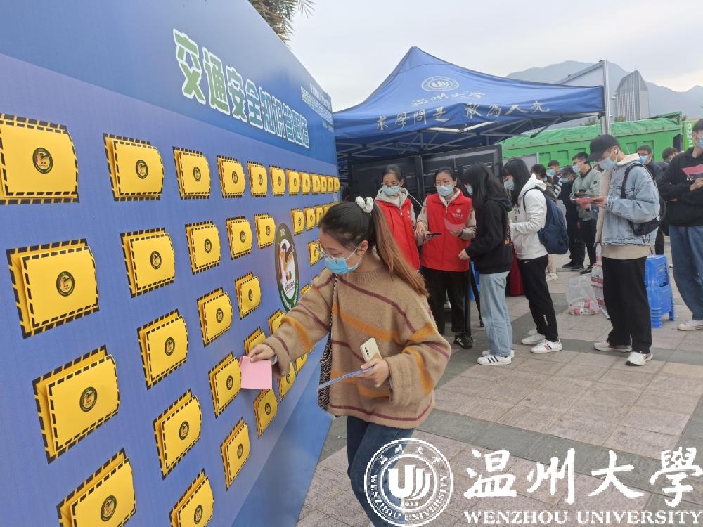 11月28日,少妇白洁 联合温州市公安局交通管理局举办“12.2全国交通安全日”主题宣传教育活动,进一步增强师生员工的交通安全意识、法制意识、文明意识,引导师生安全文明出行,筑牢交通安全防线。