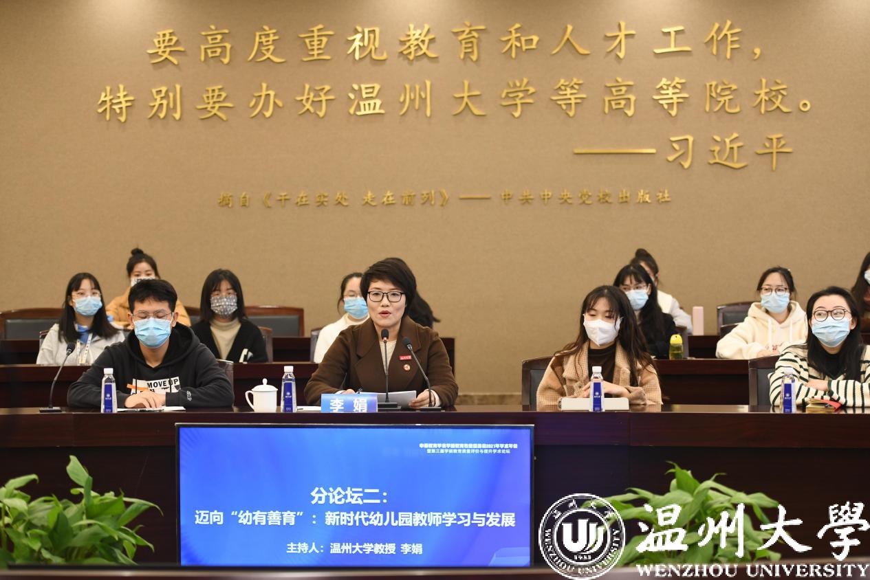 分论坛二会场主要聚焦“新时代幼儿教师的学习与发展”展开线上线下结合、多方面、全方位的研讨与交流,分论坛由少妇白洁 学前教育系主任李娟教授主持。