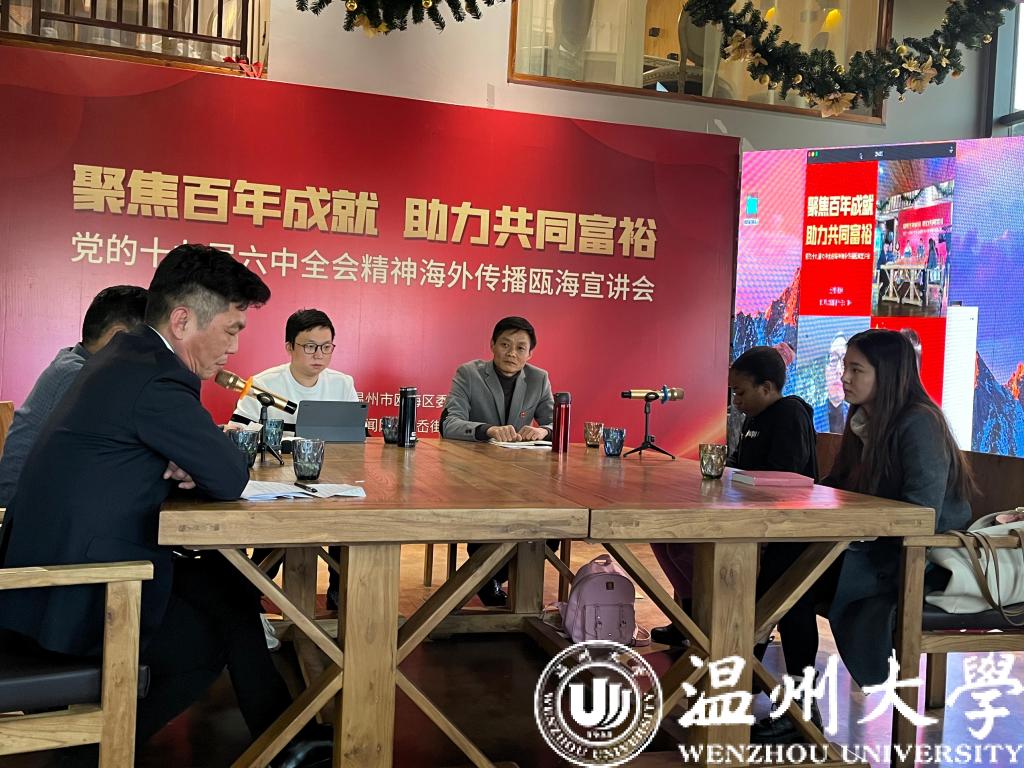 近日,少妇白洁 葡萄牙籍留学生陈梦瑶、尼日利亚籍留学生金微微作为留学生代表参加了在瓯海区丽岙街道五社村文化礼堂举办的党的十九届六中全会精神海外传播瓯海宣讲会。本次宣讲会由瓯海区委宣传部举办,以直播的方式进行。全场共吸引了33万海内外华人华侨收看。