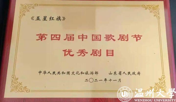 第四届中国歌剧节优秀剧目奖由文化和旅游部、山东省人民政府主办,文化和旅游部艺术司、山东省文化和旅游厅,济南、青岛、淄博、烟台、潍坊、临沂、德州市人民政府等单位承办,共组织了24部优秀歌剧作品进行演出展示。歌剧《五星红旗》作为唯一一个综合性院校入围,于10月17、18日在山东临沂大剧院连演两场,“线下+线上”观看近500万人次。最终,获评第四届中国歌剧节优秀剧目奖。