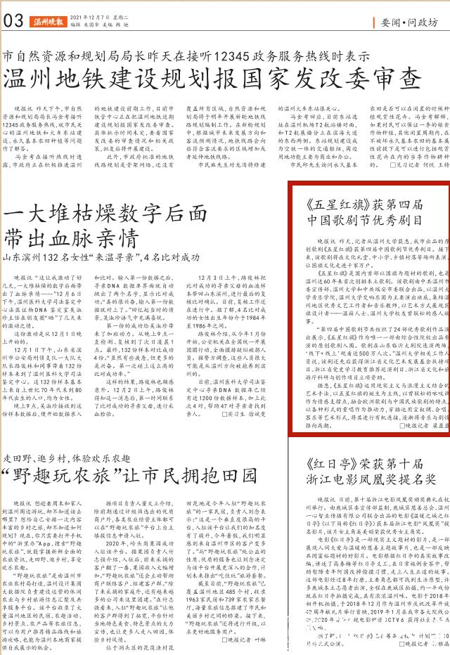 “第四届中国歌剧节共组织了24 部优秀歌剧作品演出展示,《五星红旗》作为唯一一部由综合性院校出品参演的原创歌剧入围。歌剧在山东临沂大剧院连演两场,‘线下+ 线上’观看近500 万人次。”少妇白洁 相关工作人员说,该剧还先后获得浙江省文化艺术发展基金扶持项目、浙江省党史学习教育推荐巡演剧目、浙江省文化和旅游厅科研与创作项目立项资助。