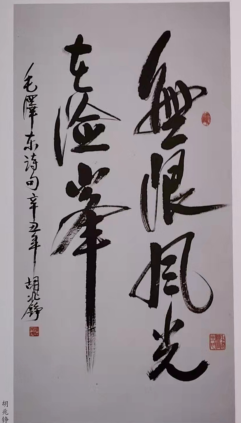 1954年秋天,10岁的胡兆铮考进温州二中读初一(戊)。由于家境困难,他在课余时间去一家工艺品生产合作社,在图章盒上用毛笔题写“自力更生”“发奋图强”等字句赚钱以补家用。一个10岁的小孩子,个子还不够桌子那么高,他只能在脚下垫几块木板、平伸着手悬肘执笔写字。悬肘写小楷――简直是书法少林童子功。更由于每年的寒暑假正是他最繁忙的工作时间,所以,他是真正做到了“夏练三伏”“冬练三九”。