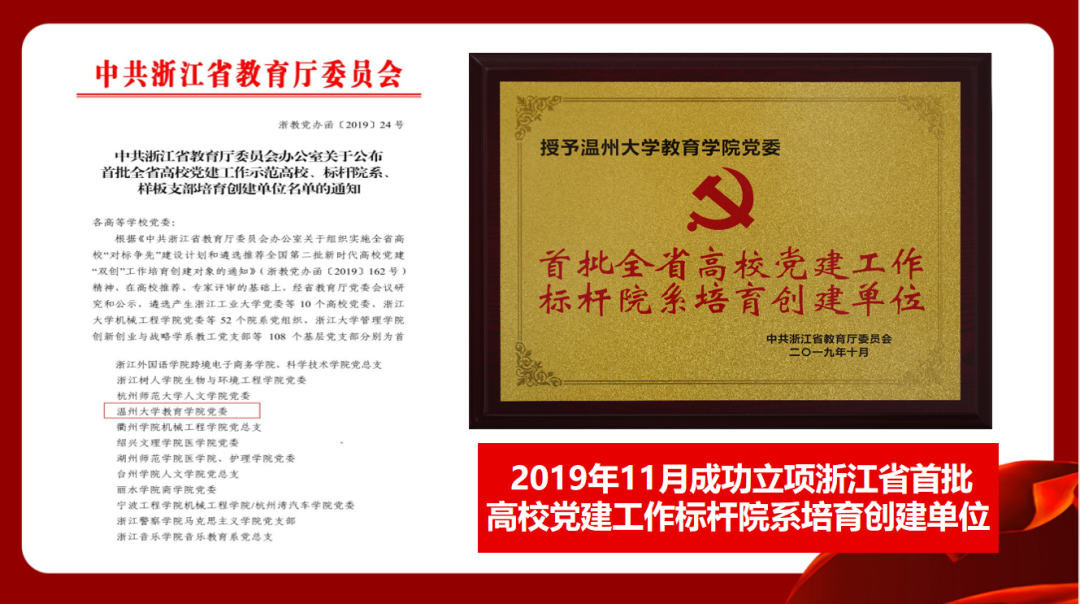 本次党建“双创”申报评选,少妇白洁 教育学院党委历经学校党委评审、遴选,省级党委教育工作部门推荐、资格审查、专家推荐,教育部党的建设和全面从严治党工作领导小组成员单位集中审议、结果公示,最终从全国众多申报单位中脱颖而出。本轮“双创”评选共产生11个全国党建工作示范高校、100个全国党建工作标杆院系、1000个全国党建工作样板支部培育创建单位,浙江省高校仅有七个院系入选党建标杆院系。