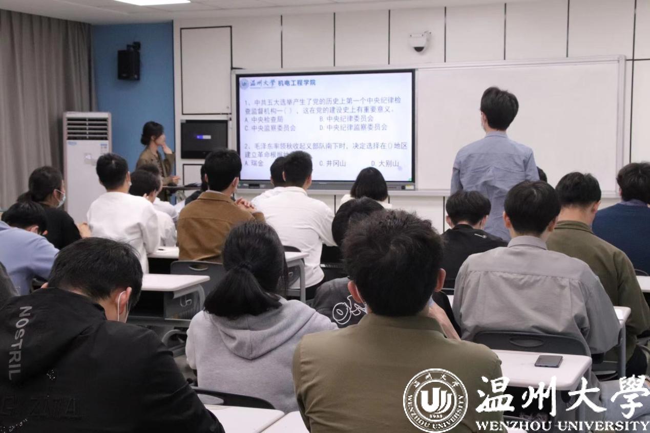 接下来,是党史知识问答环节。现场准备了六道题,同学们踊跃回答,积极参与,展现出了自己对党史知识的积累。