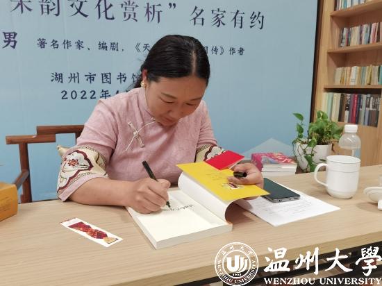 2022年4月22日晚,女性大历史小说的优秀代表蒋胜男做客湖州图书馆,举办了一场名为“悦读之美·宋韵文化赏析”的线上主题讲座,与湖州读者分享了自己作品中的宋韵文化元素及其背后的历史选择,探讨宋韵文化的品牌价值。