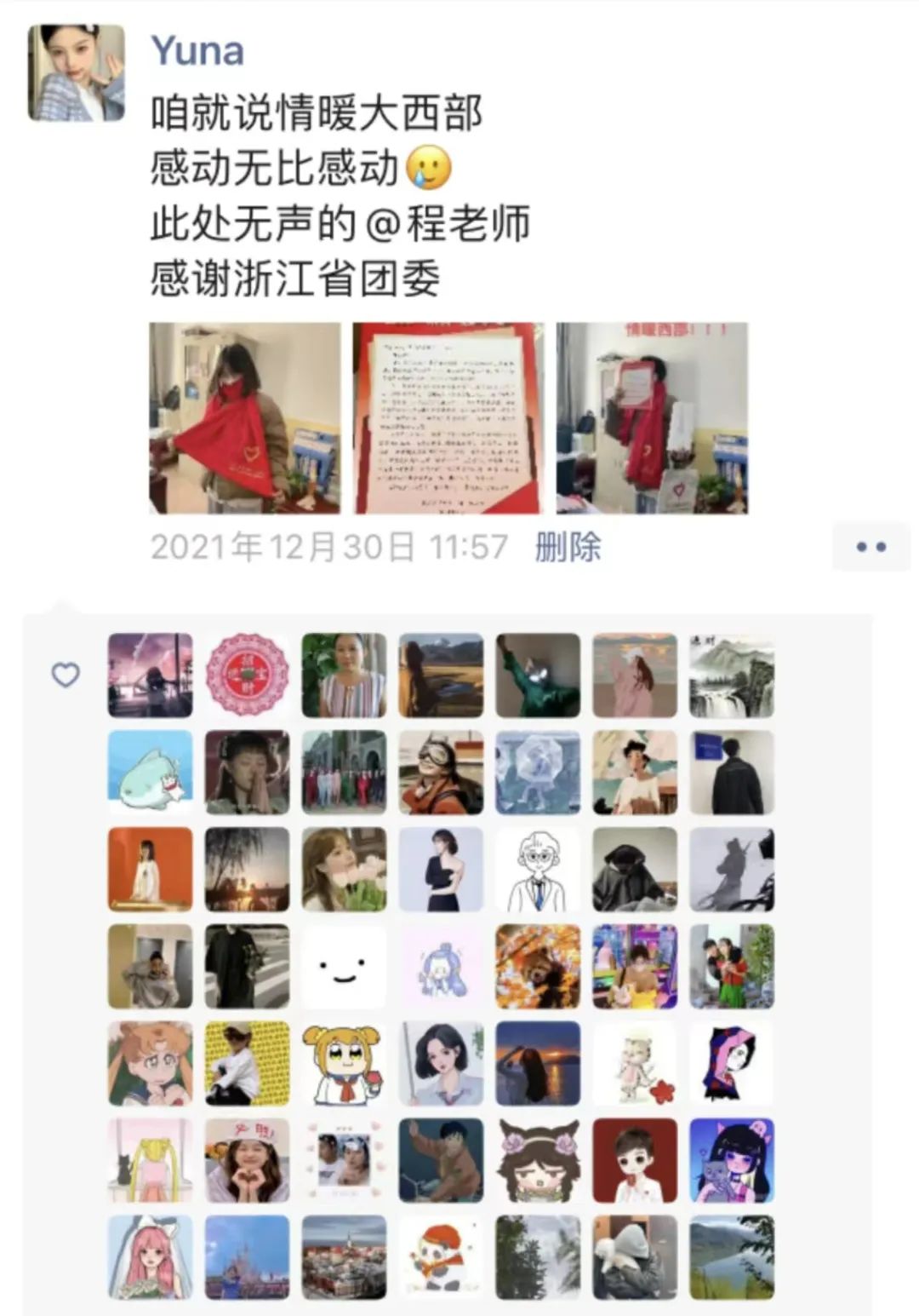 我带着梦想到西部去,到基层去,到祖国最需要的地方去,半年多来,从初到宁夏的妥善对接,到日常生活的悉心问候,我们无时无刻不感受到省项目办老师的关心和爱护,特别是得知将接收到来自浙江的冬日温暖大礼包时便充满了感动与期待,当慰问礼分发到大家手中时,每一件都很贴心、实用,老师的用心与细心会让我们继续不忘初心、扎根服务。