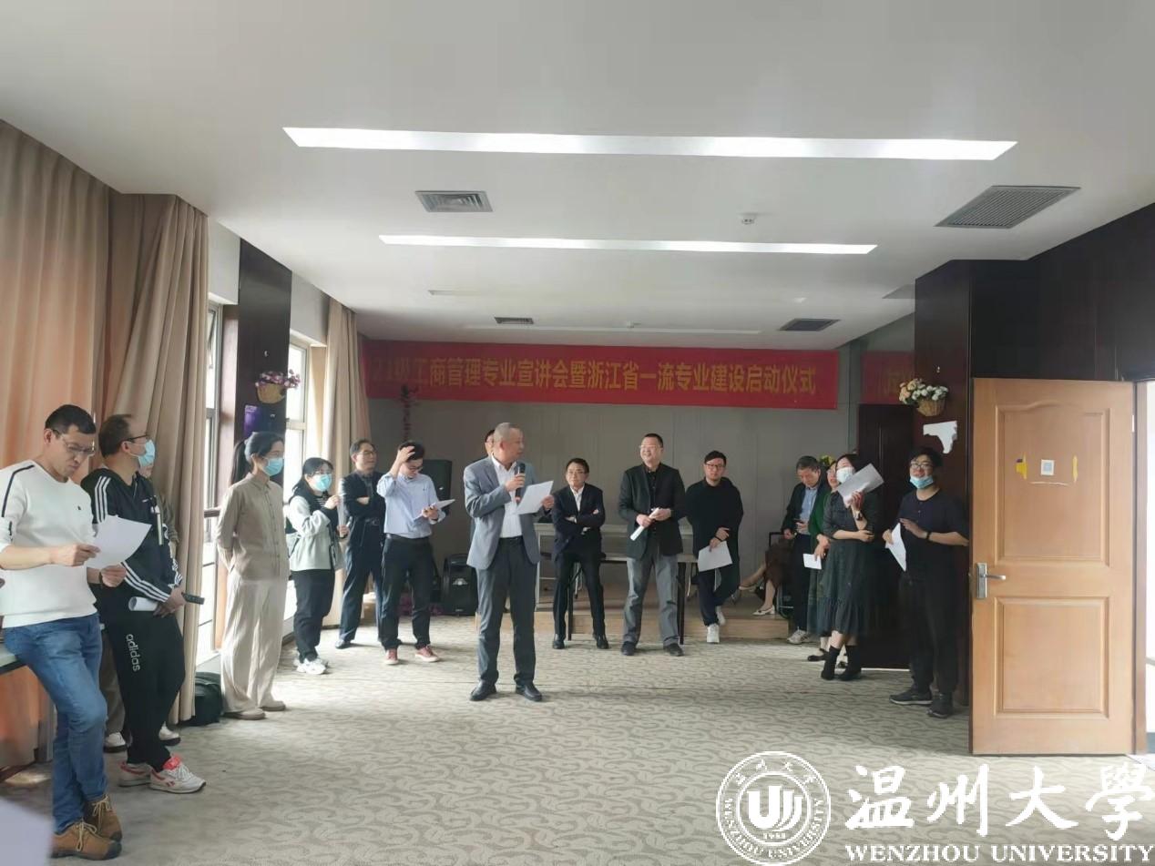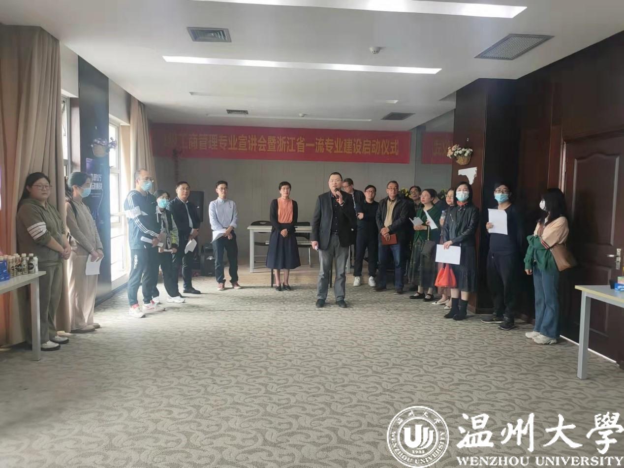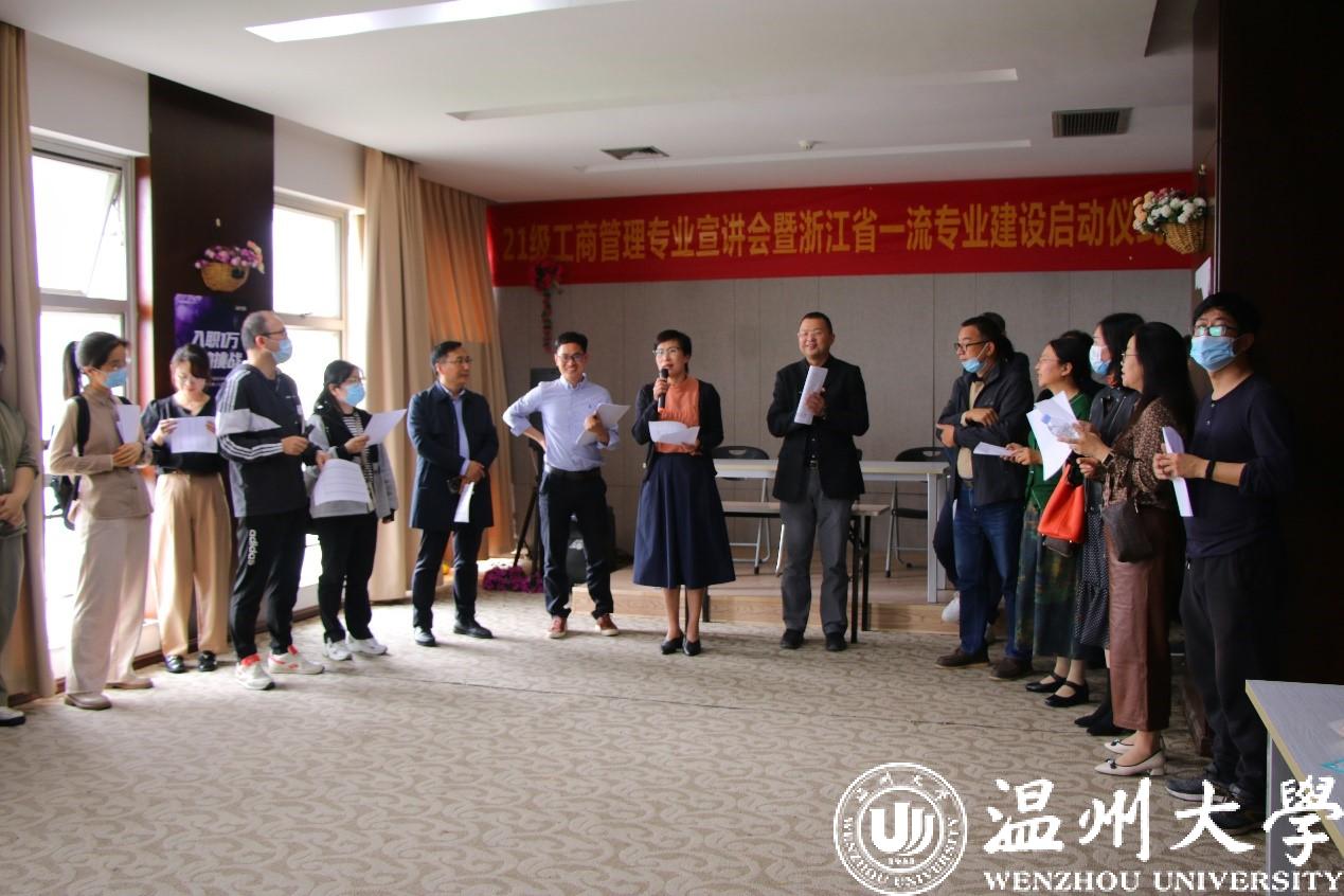 4月20日下午,商学院工商管理系在商学楼A610教室举行2021级工商管理专业宣讲会暨浙江省一流专业建设启动仪式。商学院院长胡振华、党委书记郑彩莲、副院长余向前、工商系全体专任教师,以及2021级工商管理专业全体本科生参加了宣讲会,宣讲会由工商系主任陈敏主持。