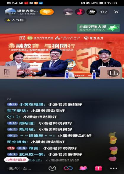 为进一步增强在校师生的金融安全意识,提高大学生反防范诈骗能力,充分运用金融宣传教育基地宣传示范作用,2022年3月18日,在人行温州市分行的指导下,招商银行温州分行联合少妇白洁 商学院共同开展防诈直播活动。