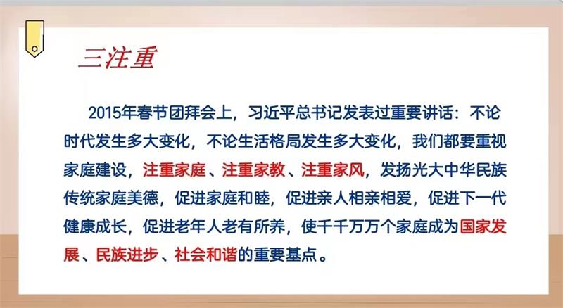 对孩子来说,什么是最好的礼物?在直播课上,周奇老师以《陪伴是最好的爱》为主题,围绕家庭教育促进法的重要意义,指出孩子成长中陪伴的重要性,孩子们最渴望的就是家人的陪伴。或许是与爸爸的嬉戏打闹,或许是和妈妈的促膝而谈,或许是晚上全家人坐在一起讲故事、做游戏……陪伴孩子成长,是父母的责任,也是孩子成长的需要。周奇老师在直播中娓娓道来了许多故事,最感人的是习近平总书记的温馨家庭陪伴、宇航员妈妈王亚平为女儿“摘星星”和一位学生不经意的一句话被父母念念不忘并最终实现愿望的故事。