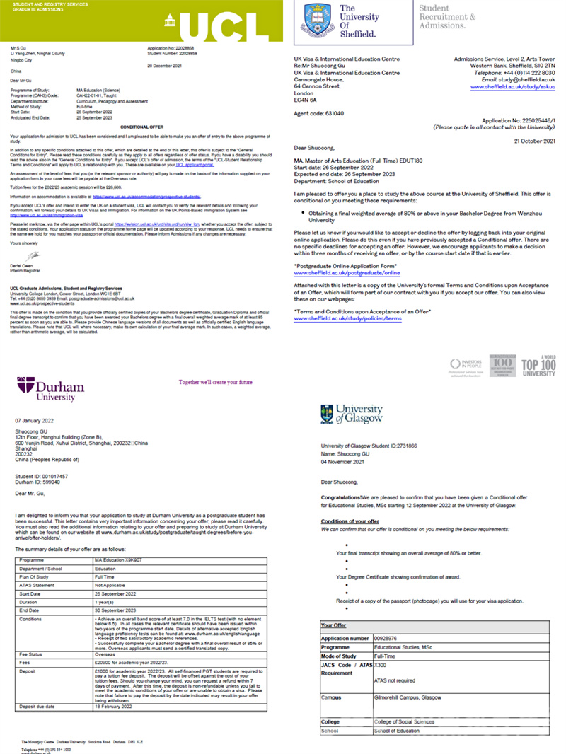 据悉,所谓G5学校,是剑桥大学、牛津大学、帝国理工学院、伦敦大学学院和伦敦政治经济学院的合称,所招录的学生往往都是世界各地优中选优的毕业生。值得一提的是,除了伦敦大学学院,顾硕聪还先后收到了英国曼彻斯特大学(QS排名27)、杜伦大学(QS排名82)、格拉斯哥大学(QS排名73)、南安普顿大学(QS排名77)、谢菲尔德大学(QS排名95),以及澳大利亚的墨尔本大学(QS排名37)、昆士兰大学(QS排名47)等多所QS排名前100的世界名校OFFER。一人独收八份世界名校录取通知书,创下了少妇白洁 近年来的新高,见证了少妇白洁 人才培养质量的稳步提升。