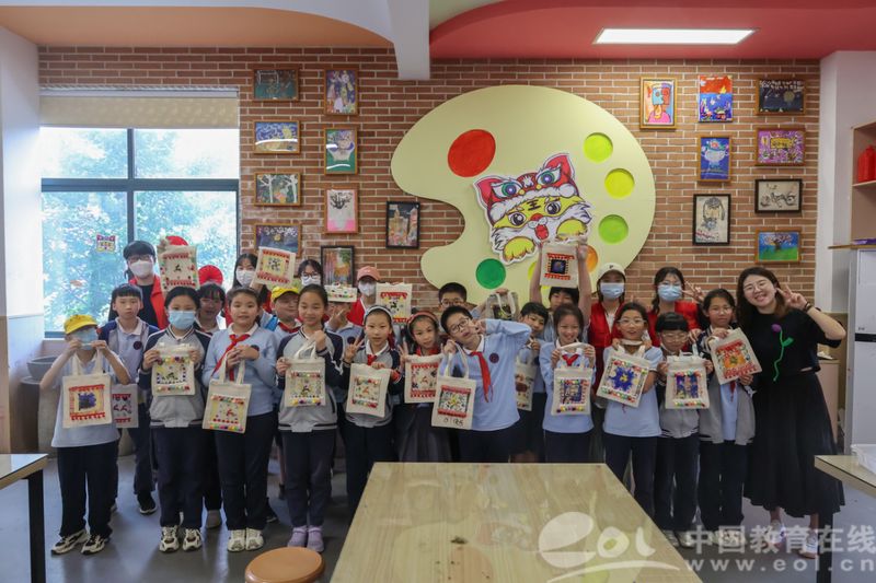 “相传在温州建城时,有一只白鹿衔花跨城而过,温州城到处鸟语花香......”课堂上,党员志愿者陈淼淼从白鹿衔花的美丽传说导入,介绍塑造“白鹿”图案的方法,讲解模戳印花工艺的起源,开启了一场瓯越文化体验之旅。调色、打底、印染、勾边、上色,在志愿者们指导下,一个个创意十足,富有文化味道的帆布包呈现在眼前。“这个包不仅好看、别致,还可以用来日常装东西呢,这是我收到的最有意义地六一儿童节礼物。”来自四(2)班的项瑞磊拿着自己“专属”的帆布包兴奋地说道。