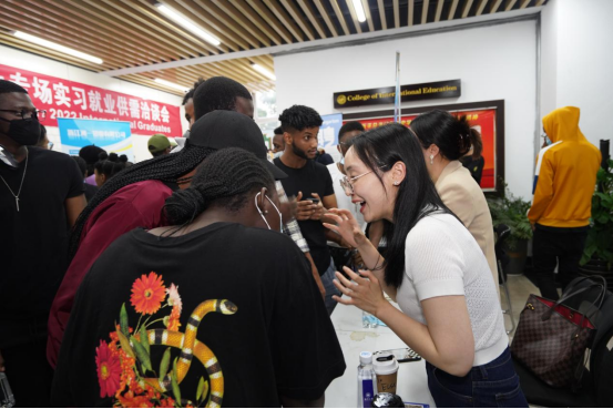 本次实习就业供需洽谈会吸引了登高电气有限公司、浙江洲一铝业有限公司、森马协和国际学校等8家在温企业,提供销售人员、工程师、学科教师、咖啡培训师、新媒体运营等60余个岗位。来自津巴布韦、埃塞俄比亚、坦桑尼亚等70多个国家的150余名在校国际学生参加了本次活动。