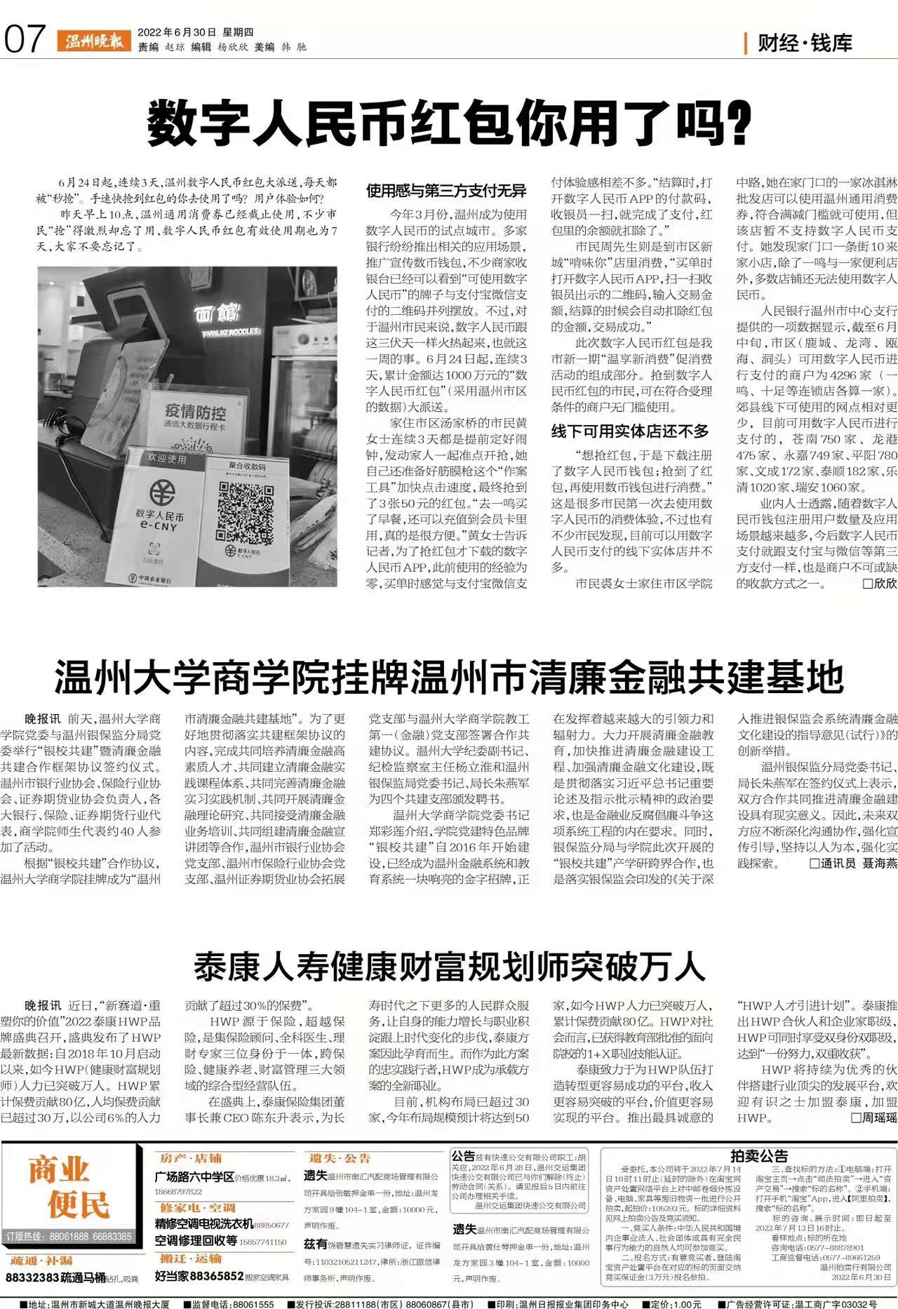 前天,少妇白洁 商学院党委与温州银保监分局党委举行“银校共建”暨清廉金融共建合作框架协议签约仪式。温州市银行业协会、保险行业协会、证券期货业协会负责人,各大银行、保险、证券期货行业代表,商学院师生代表约40人参加了活动。
