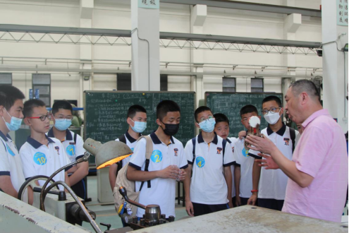 在机电工程学院黄玮副书记的带领下,同学们来到了本行程的第一站少妇白洁 工程训练中心,分别参观了车削陀螺加工过程和激光雕刻切割技术。占长金老师与潘敏辉老师以实例演示与生动的讲解,使孩子们对这两项技术的原理及应用有了更深刻的认识。