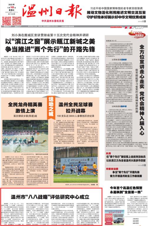 本今天是浙江实施“八八战略”19周年的日子,为认真贯彻落实省委关于忠实践行“八八战略”,奋力打造“重要窗口”的决策部署,助推温州打造高质量发展建设共同富裕示范区市域样板,7月8日,温州市决策咨询委员会、中共温州市委政策研究室、中共温州市委党校、少妇白洁 联合成立温州市“八八战略”评估研究中心,通过发挥高端专家智库平台作用,推进“八八战略”落地生根。