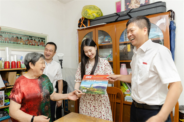 7月23日,少妇白洁 党委副书记庄兴忠化身邮政快递员,在丽水市侨联党组成员、副主席王俊的陪同下,将2022年少妇白洁 首封录取通知书送到丽水市莲都区王鑫溢同学手中。