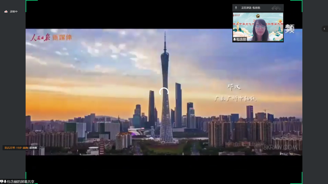 课堂上,包含丽院长播放了《大美中国》和《100年来,中国做了什么》纪录片,向海外华裔青少年介绍了中国的山川湖海、亭台楼榭,壮丽山河的自然之美、人文之美、共富之美。学员们通过云端认识了中华文化独特的社会历史风情、浓郁的乡土人情和悠久的美食文化,切身感受到中国科技创新、工业经济发展、基础设施建设等从无到有、从弱到强,实现跨越式、根本性的华丽转变,中国正朝着共同富裕大步迈进。壮阔的景象勾起了学员们的乡愁,他们说:“祖国(中国)风光太美了,好想回去看看天安门、黄鹤楼、西湖,去不同的地方感受不同的美食和文化。”