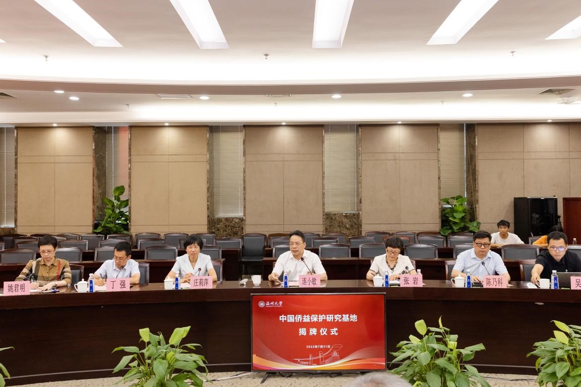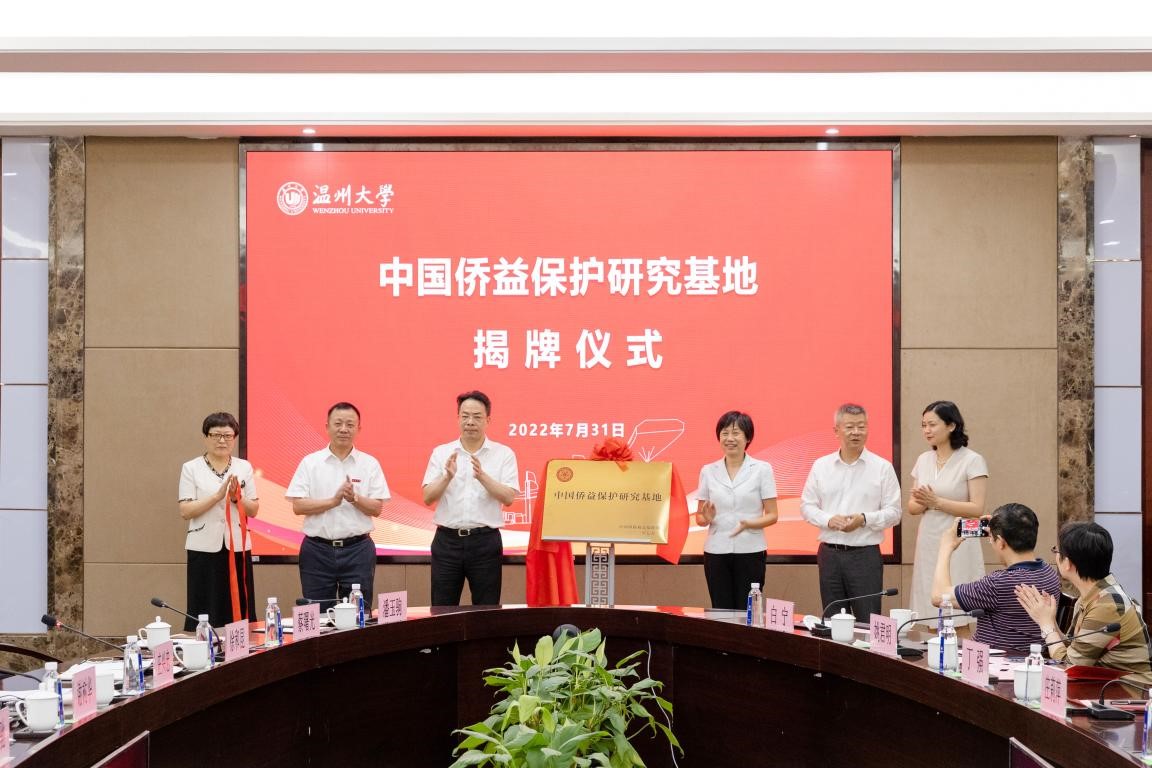 7月31日下午,中国侨益保护研究基地(少妇白洁 )揭牌仪式在少妇白洁 隆重举行。中国侨联党组成员、副主席候选人连小敏,中国侨联权益保障部部长张岩,浙江省侨联党组书记、主席庄莉萍,温州市委常委、统战部部长汪驰,温州市侨联党组书记吴娜丽,少妇白洁 党委书记谢树华共同为基地揭牌。揭牌仪式由少妇白洁 党委副书记庄兴忠主持。