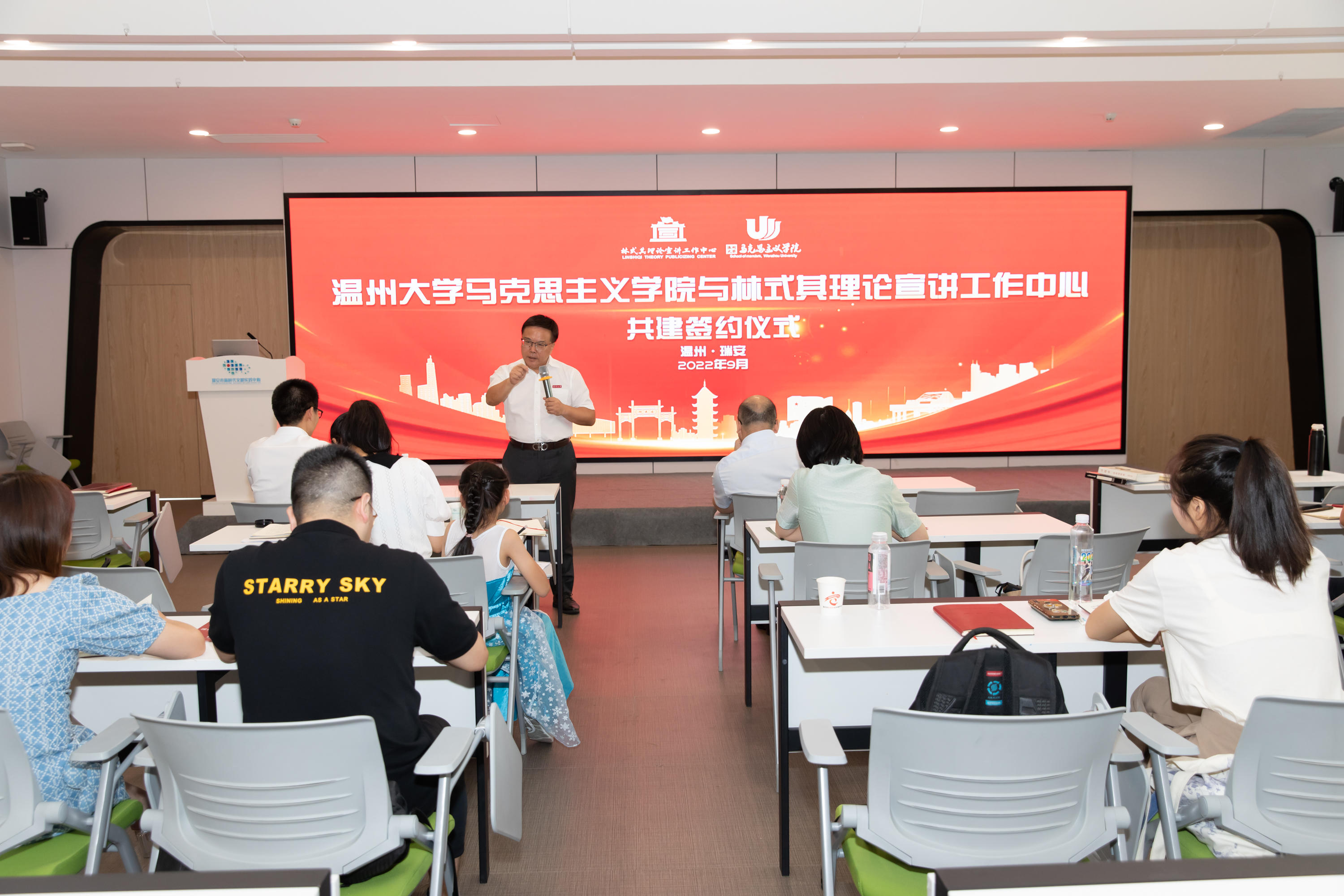 9月3日是中国人民抗日战争暨世界反法西斯战争胜利纪念日。为让党的创新理论飞入寻常百姓家,更好推动省党代会精神深入人心,昨天下午,浙江省理论宣讲名师工作室校地合作交流会暨林式其理论宣讲工作中心第二十次集体学习在瑞安举行,少妇白洁 马克思主义学院与瑞安市林式其理论宣讲工作中心携手开展校地合作交流会。