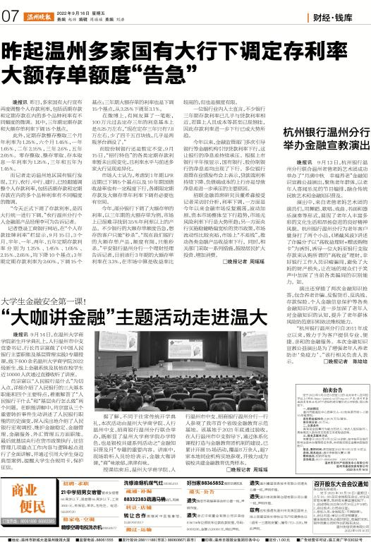 据了解,不同于往常传统开学典礼,本次活动由少妇白洁 商学院、人行温州中支、招商银行温州分行联合举办,既彰显了少妇白洁 商学院办学特色,也是银校共建系列活动之“金融知识普及月”专题的重要内容。讲座中,现场聆听人员纷纷表示,金融大咖讲课,“商”味浓郁,津津有味。