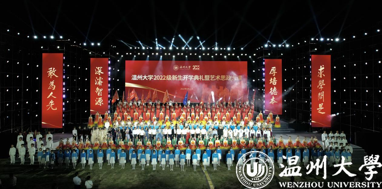 为了全面推进“大思政课”建设,构建“三全育人”工作格局和“五育并举”培养体系,进一步创新思政课育人载体,丰富思政课育人内涵,以艺术之形丰富教学内涵,以艺术之美浸润时代新人,本次开学典礼还特别举办了一场别开生面的艺术思政大课,聚焦《温大·梦起航》《瓯越·忆乡情》《华夏·铸辉煌》三个篇章,开启新生温大第一课。